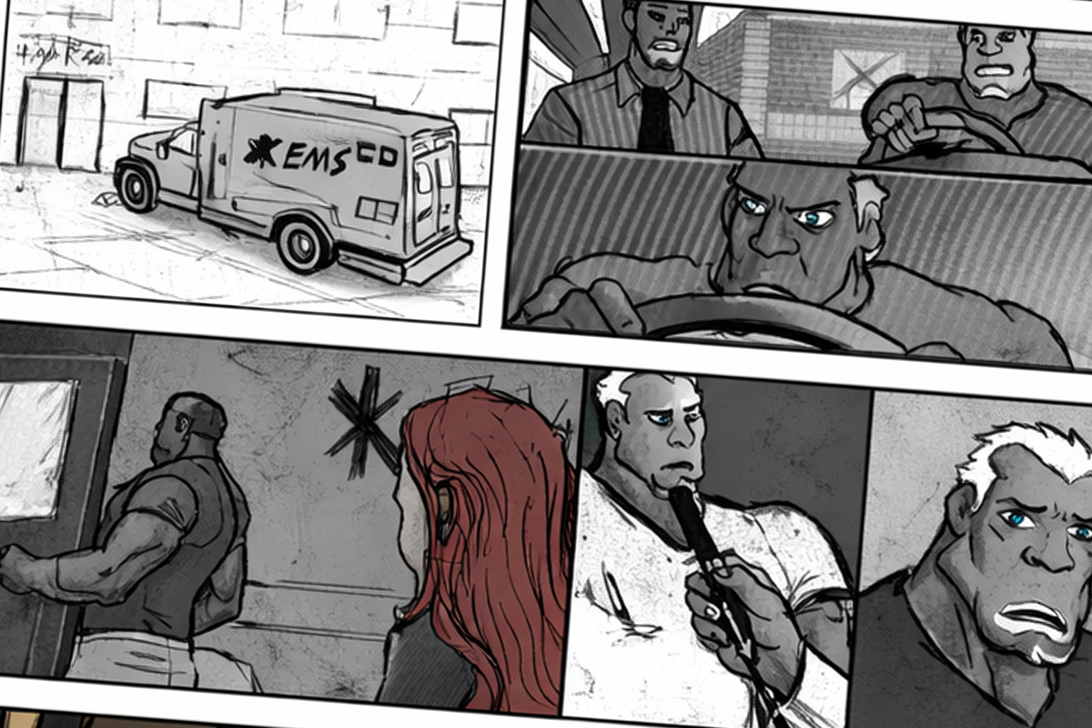 Tom brought forward a strong creative concept supported by rough, expressive sketches that defined the characters and storyline. The challenge lay in transforming these foundations into a finished comic that felt cohesive, polished, and emotionally charged. The objective was not reinterpretation, but elevation, preserving the original vision while giving it the visual strength and consistency expected of a professionally produced comic.