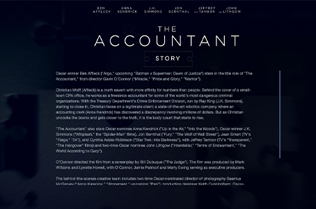 The Accountant is a story driven by precision, control, and underlying tension, where intellect and violence coexist in measured balance. The promotional experience needed to echo that tone. Not loud. Not explanatory. A digital presence designed to intrigue, unsettle, and pull audiences into the film’s world through restraint and atmosphere rather than spectacle.