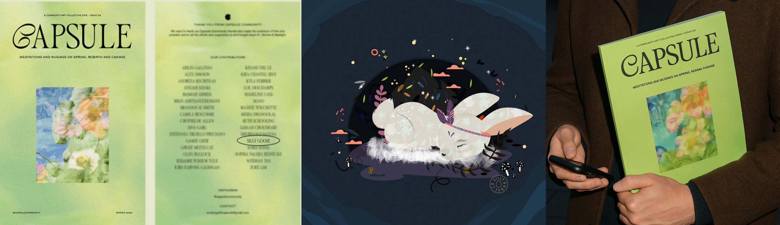 - Featured in Capsule Community — Capsule Zine Spring Edition announcement.