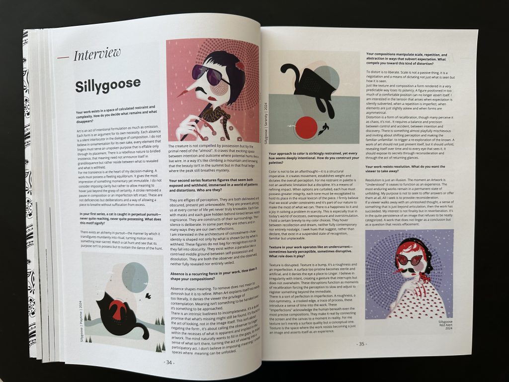 This feature highlights Sillygoose’s contribution to contemporary visual art, amplifying their voice within international critical and creative circles.